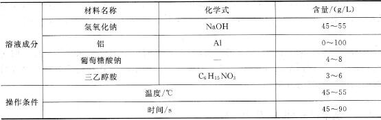 表2-43 堿蝕工藝配方及操作條件