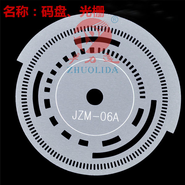 精密碼盤和編碼器工作原理介紹:一般來說,編碼器和碼盤都是指編碼器。但要細說碼盤是光電編碼器的光柵圓盤。編碼器是將信號或數據進行編制、轉換為可用以通訊、傳輸和存儲的信號形式的設備。編碼器把角位移或直線位移轉換成電信號,前者稱為碼盤,后者稱碼尺.碼盤測量角位移的數字編碼器。它具有分辨能力強、測量精度高和工作可靠等優點,是測量軸轉角位置的一種最常用的位移傳感器。精密碼盤分為絕對式編碼器和增量編碼器兩種,前者能直接給出與角位置相對應的數字碼;后者利用計算系統將旋轉碼盤產生的脈沖增量針對某個基準數進行加減以求得角位移。光電編碼器是一種通過光電轉換將輸出軸上的機械幾何位移量轉換成脈沖或數字量的傳感器。這是目前應用最多的傳感器,光電編碼器是由碼盤(光柵盤)和光電檢測裝置組成。碼盤(光柵盤)是在一定直徑的圓板上等分地開通若干個長方形孔。由于光電碼盤與電動機同軸,電動機旋轉時,碼盤(光柵盤)與電動機同速旋轉,經發光二極管等電子元件組成的檢測裝置檢測輸出若干脈沖信號,其原理是通過計算每秒光電編碼器輸出脈沖的個數就能反映當前電動機的轉速。此外,為判斷旋轉方向,碼盤還可提供相位相差90º的兩路脈沖信號。精密碼盤的材料有玻璃、金屬、塑料等等。玻璃碼盤是在玻璃上沉積很薄的刻線,其熱穩定性好,精度高,易碎,成本高;金屬碼盤通常是指不銹鋼碼盤,直接以通和不通刻線,不易碎,但由于金屬有一定的厚度,精度就有限制,易變形,其熱穩定性就要比玻璃的差一個數量級;塑料碼盤是經濟型的,其成本低,不易碎和變形,但精度、熱穩定性、壽命均要差一些